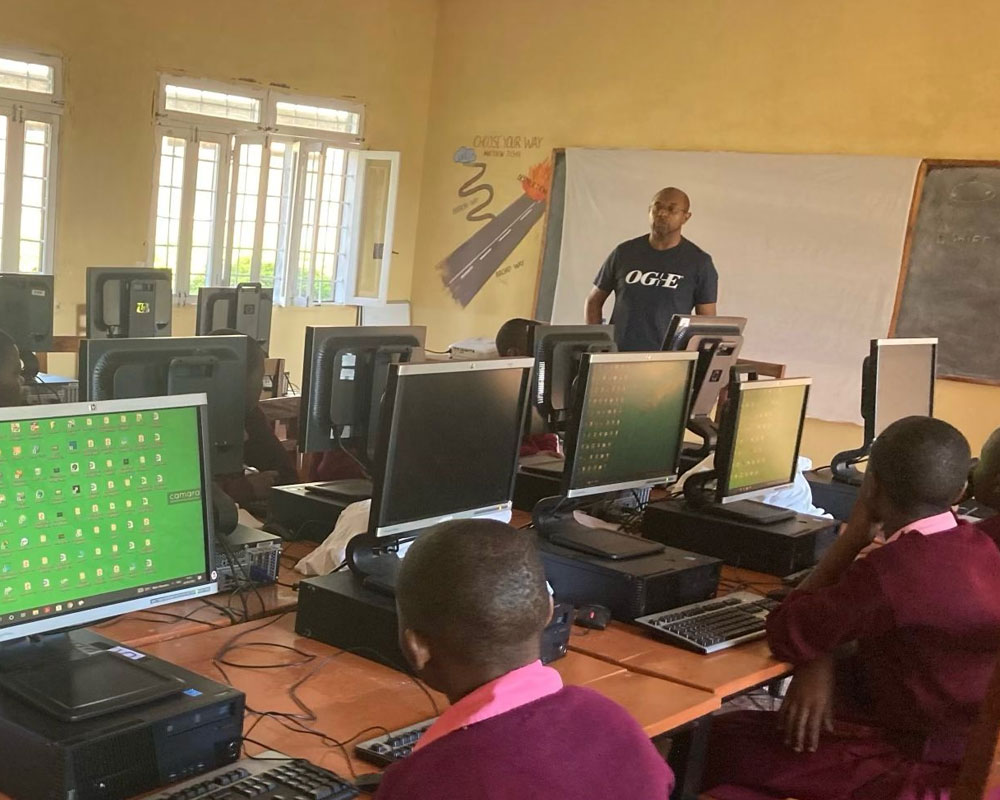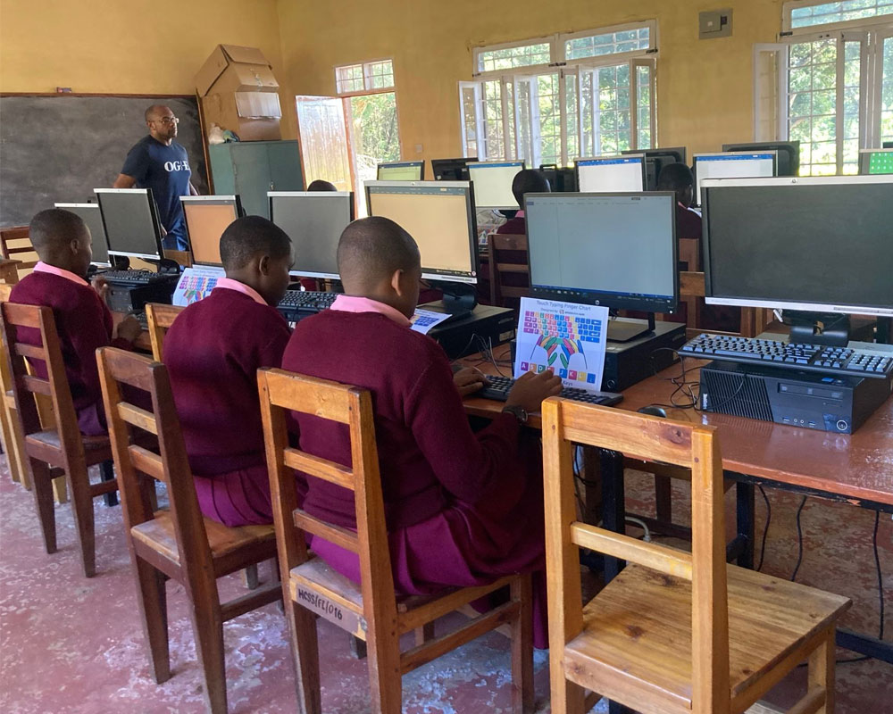 Volunteer, Frederick Cooper from Edmond Oklahoma visits Herring Christian Secondary School in Chimala, Tanzania to give the students a basic three day typing course. Frederick also donated funds for one year, so that the school could have internet service.